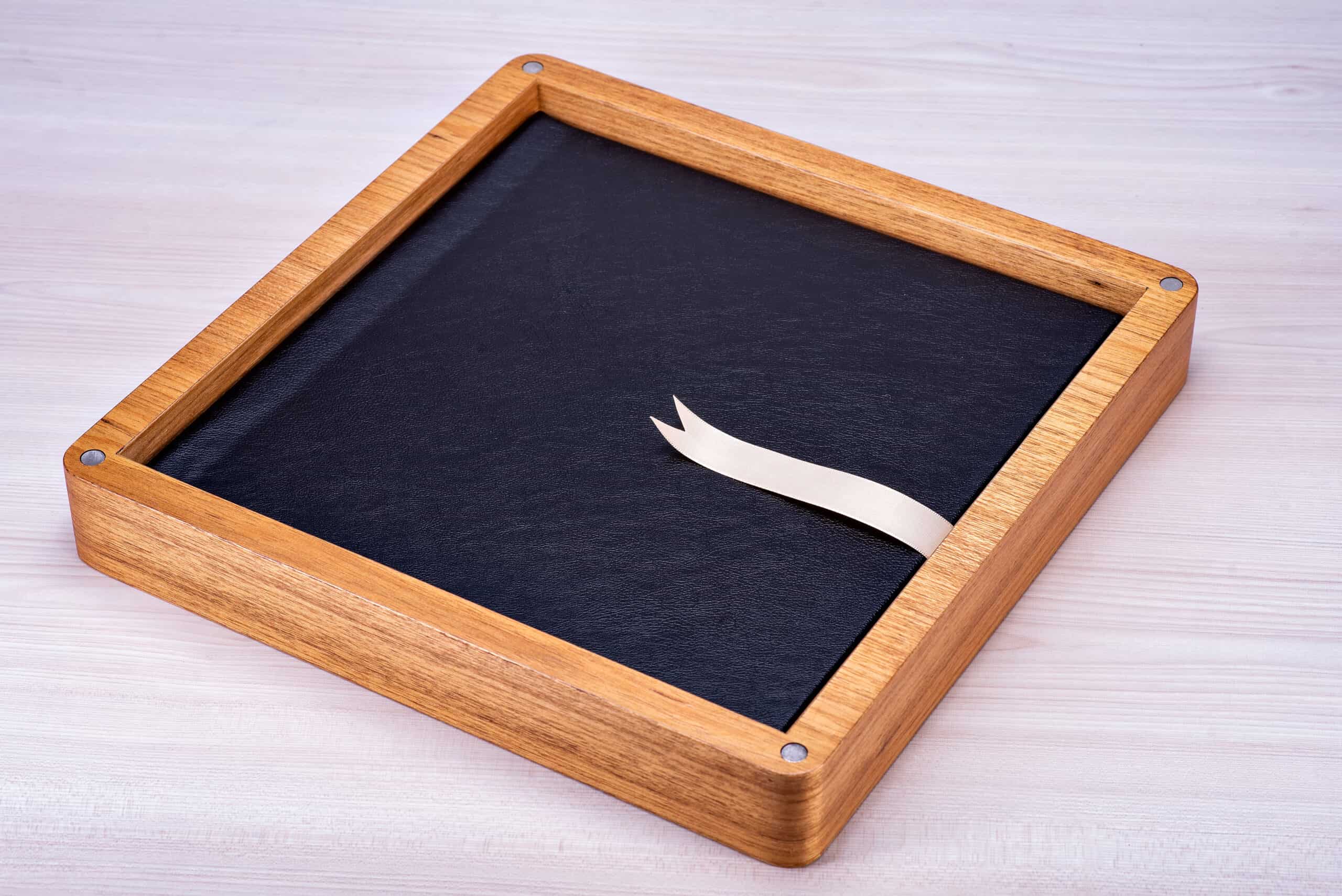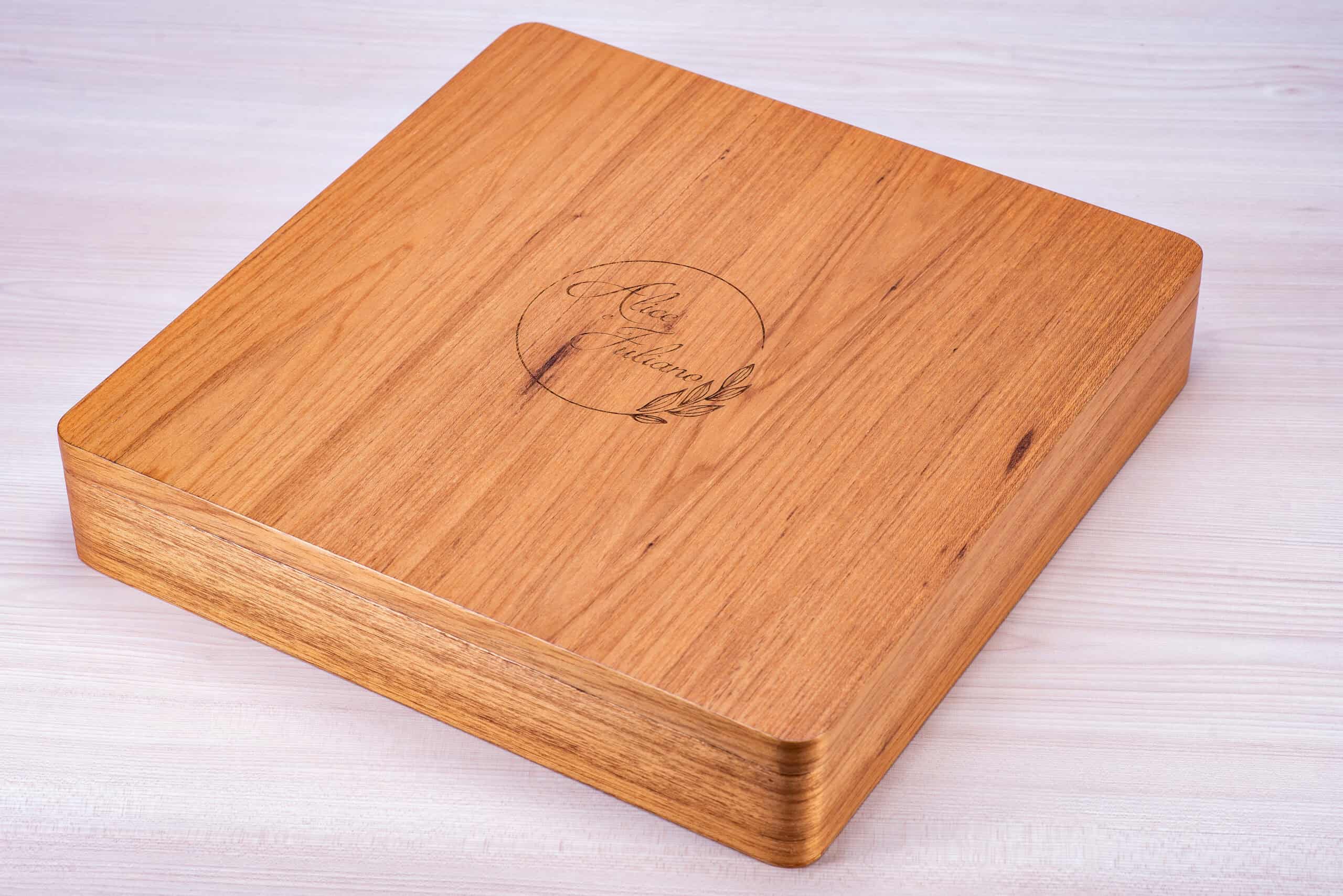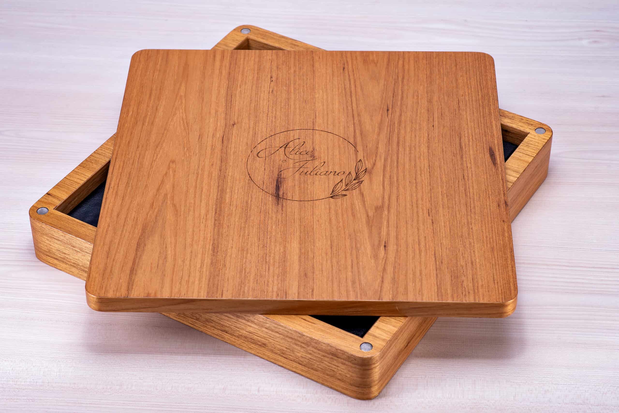 Caixa encaixe em madeira natural com fechamento magnético.