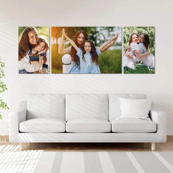 Fotos impressas em papel fotográfico laminado, colado em chapa de MDF com acabamento lateral de 3 cm preto.